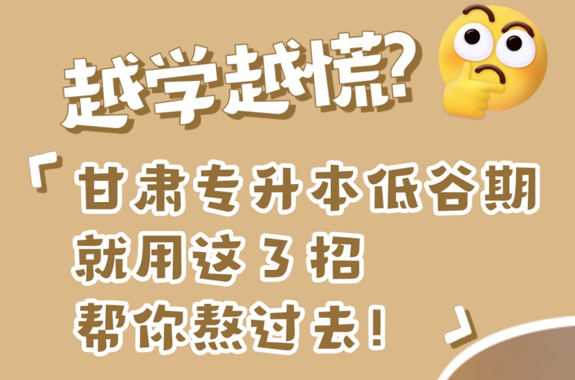 甘肃专升本的同学,先停一下!是不是现在有点学不进去了?看着厚厚的专业课资料,翻了几页就犯困;刷着真题全是错题,越做越没信心;甚至开始怀疑,自己是不是根本不是读书的料?