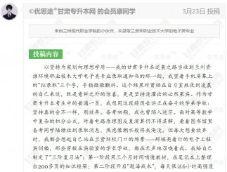 这里有优思途®甘肃专升本网会员小伙伴的使用评价。甘肃专升本备考,认准优思途®品牌,5年超20000考生共同见证,上岸其实不难~...