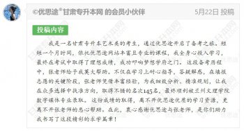 这里汇总整理了优思途®甘肃专升本网会员小伙伴的考后反馈。甘肃专升本备考,认准优思途®品牌,5年超20000考生共同见证,上岸其实不难~...
