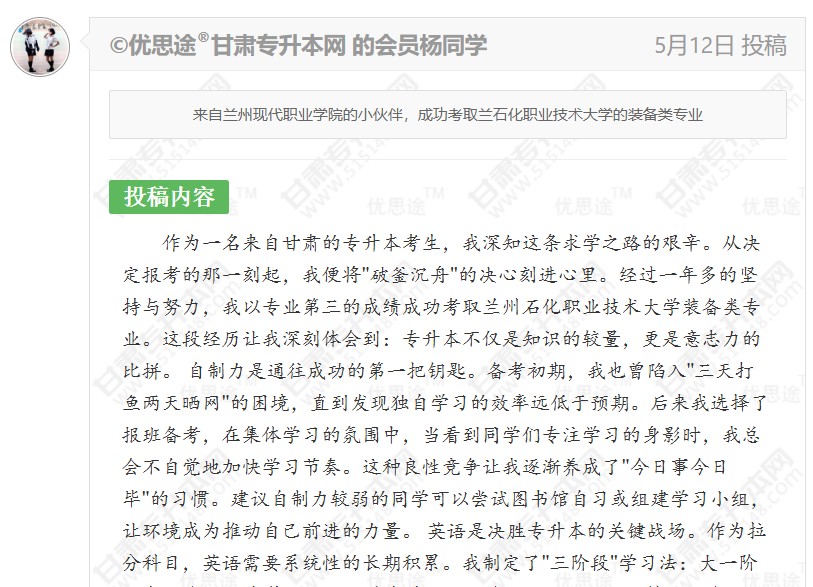 甘肃专升本考试成功心得分享:以坚持为桨,驶向理想彼岸