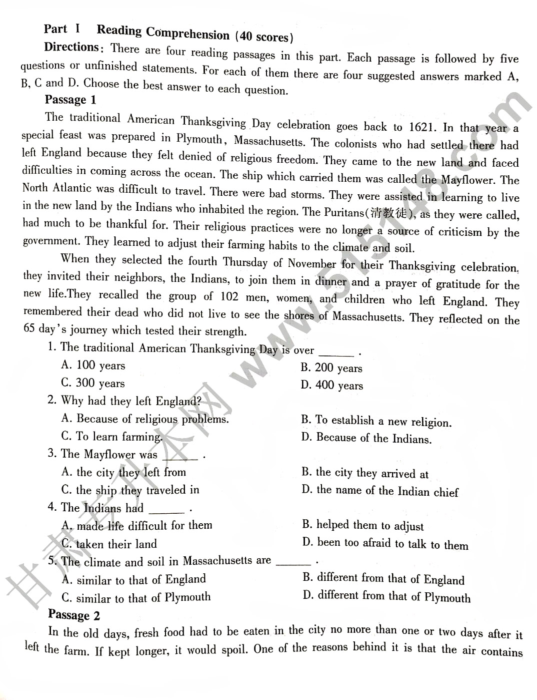 甘肃专升本考试公共课英语原题分享(四)/试题编码:Y2906/