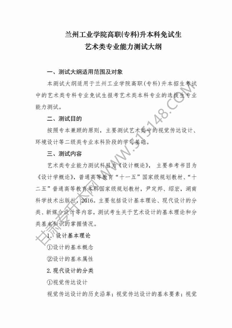 大纲适用:2025年兰州工业学院专升本考试艺术类所有专业免试生专业校测