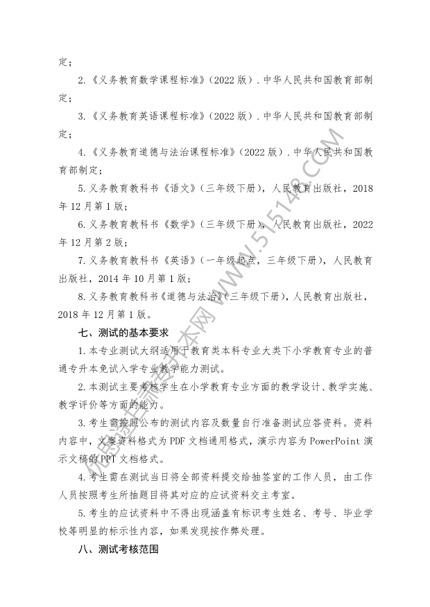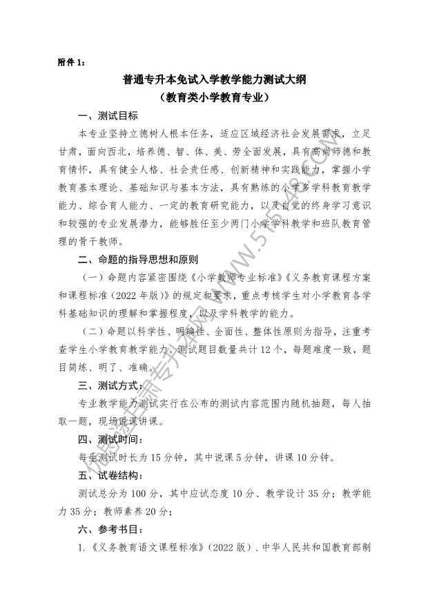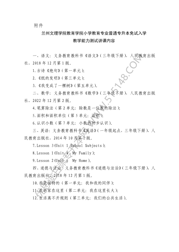 大纲适用:2026年兰州文理学院专升本考试教育类小学教育免试生专业校测