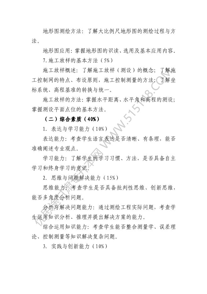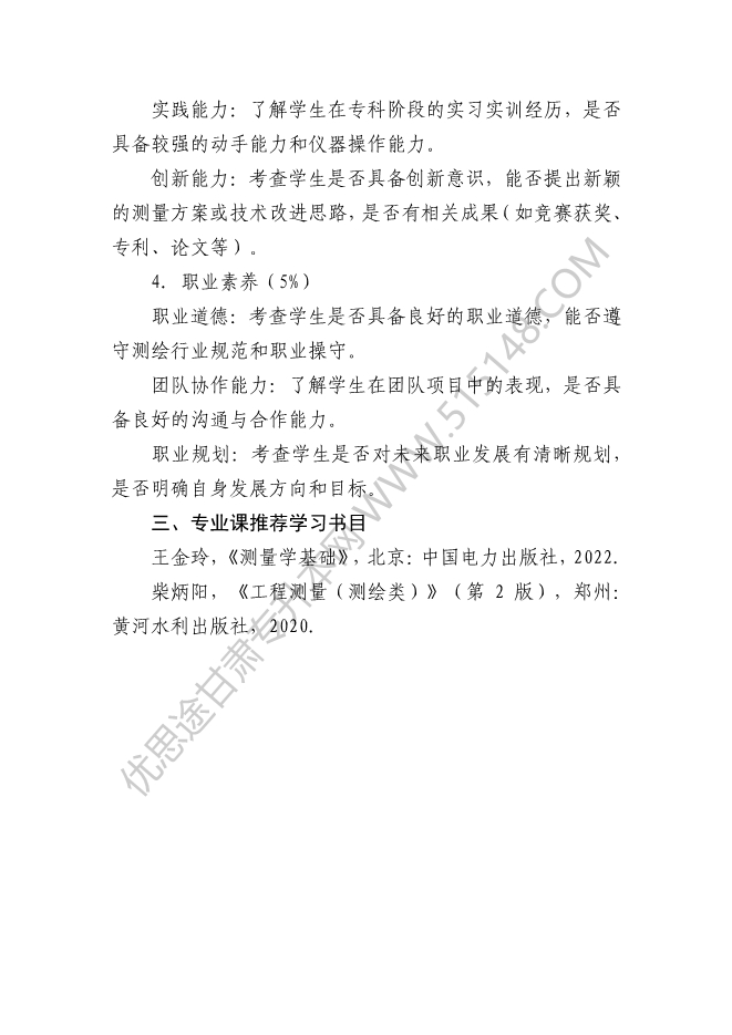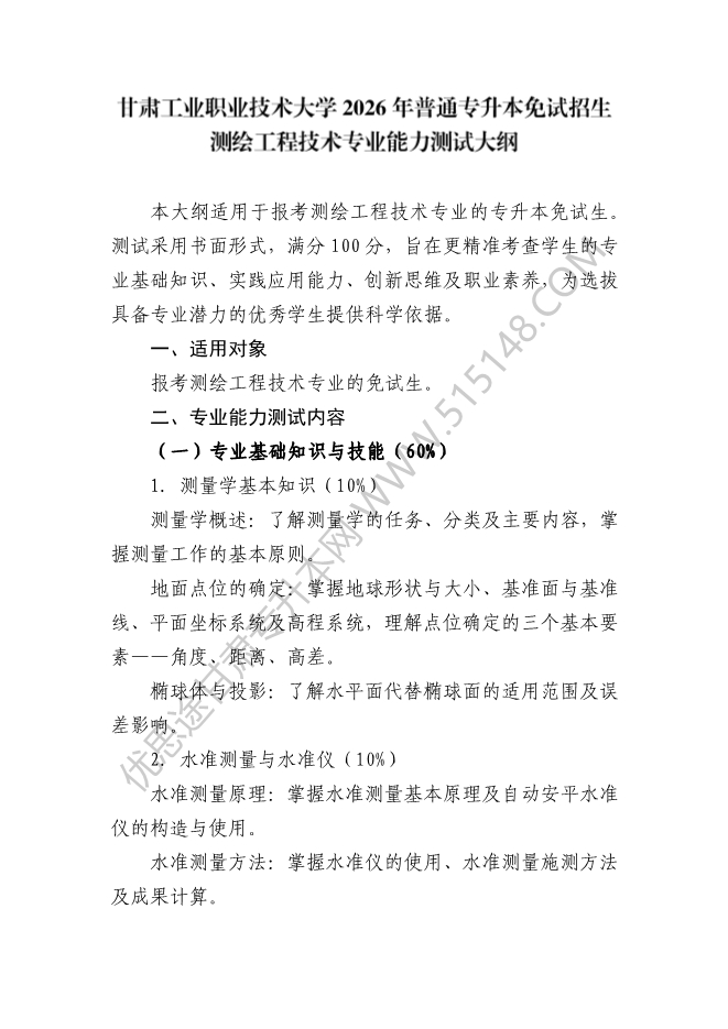 2026年甘肃工业职业技术大学资源类测绘工程专业免试生能力测试大纲