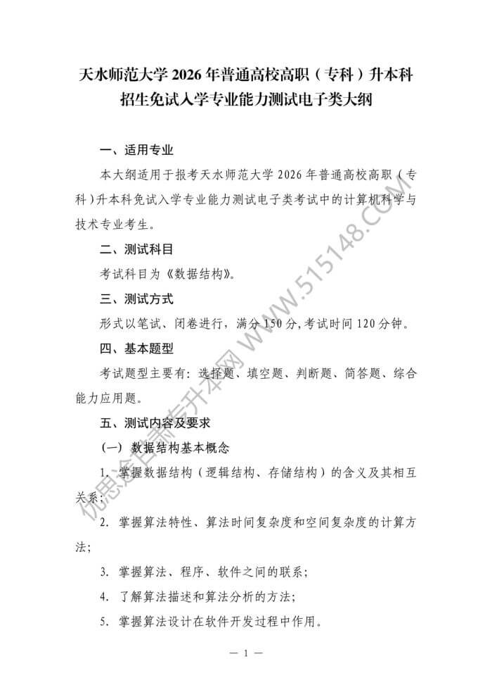 大纲适用:2026年天水师范大学专升本考试电子类所有专业免试生专业校测