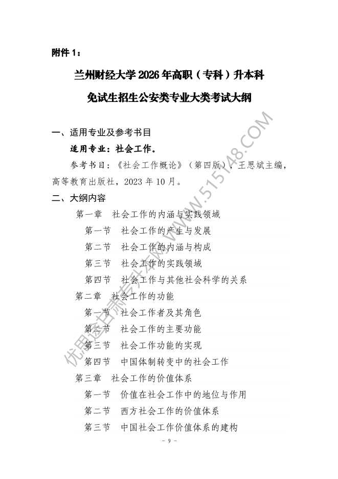 大纲适用:2026年兰州财经大学专升本考试公安类所有专业免试生专业校测