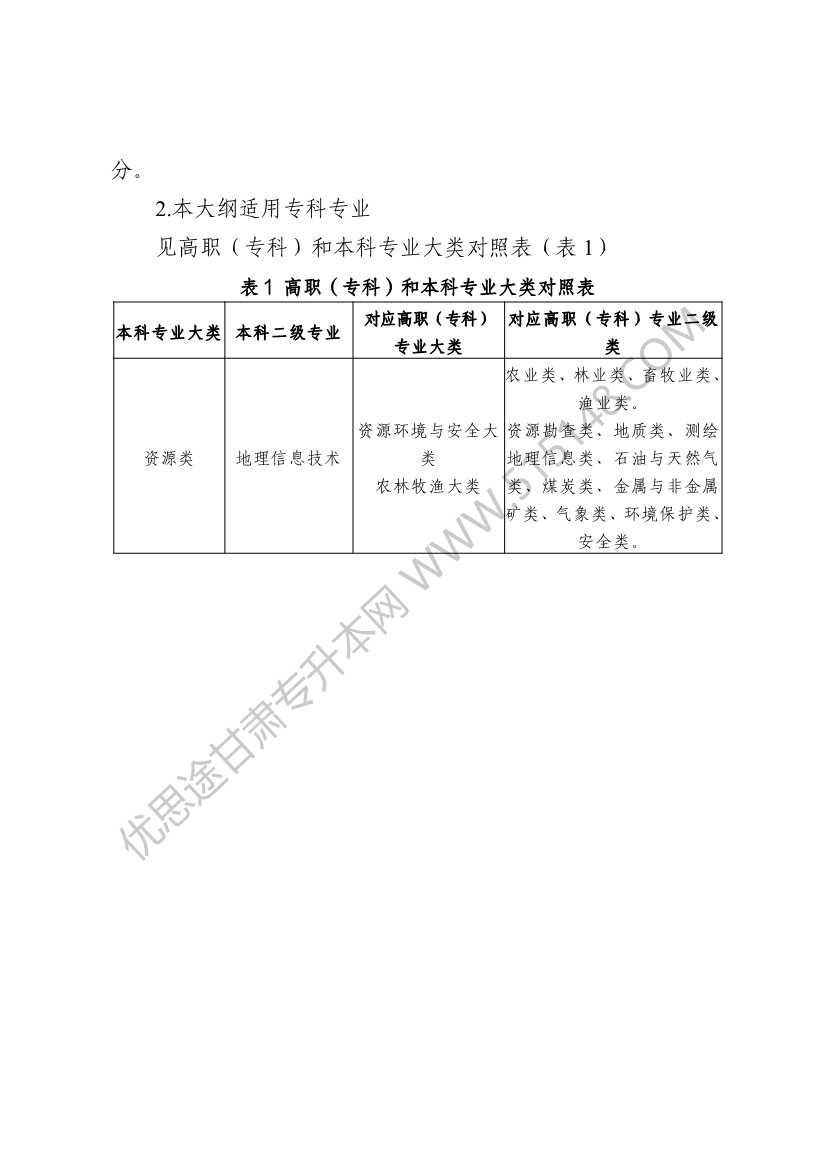大纲适用:2026年甘肃林业职业技术大学专升本考试资源类所有专业免试生专业校测
