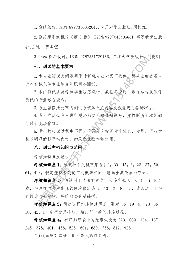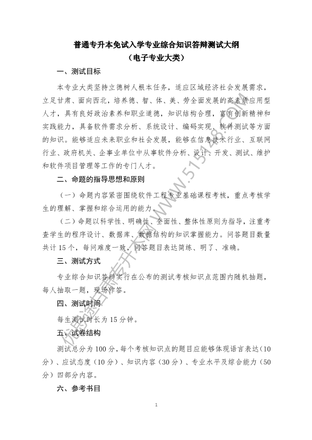 大纲适用:2026年兰州文理学院专升本考试电子类软件工程免试生专业校测