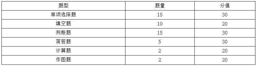 试卷题型包括客观题(单项选择题、填空题、判断题)和非客观题(简答题、计算题、作图题)