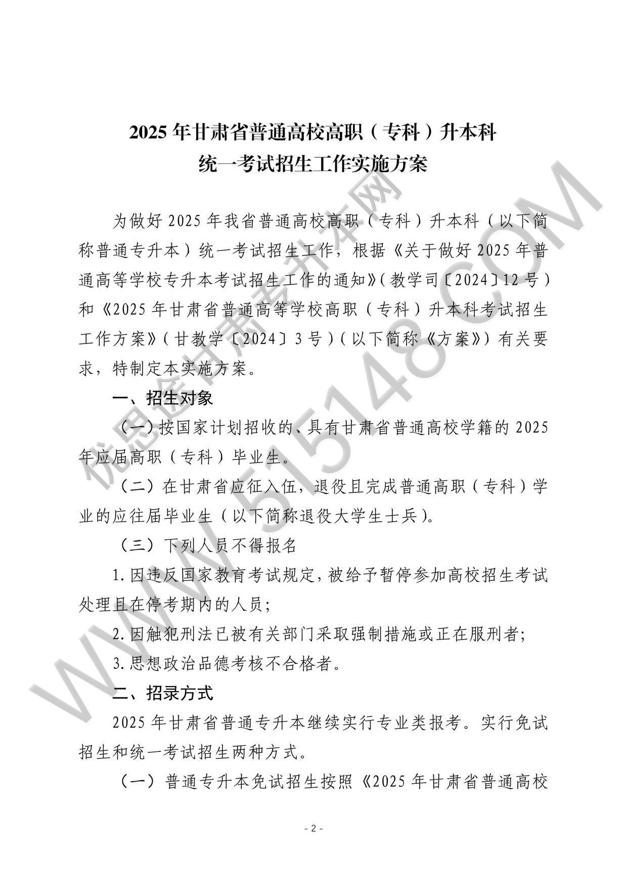 2025年1月14日,甘肃省教育考试院官网更新了《2025年甘肃专升本招生实施文件》,原文网址点击这里。以下是原文转载。