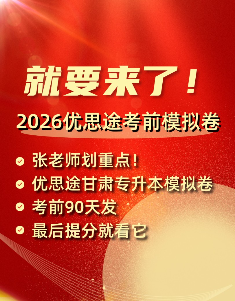 哈喽,甘肃专升本的小伙伴们!最近后台全是问张老师优思途考前模拟卷啥时候发的消息,昨天还有伙伴专门私信我:“张老师,优思途2026年的模拟卷啥时候能出来啊?”