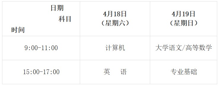 (四)考试时间。全省统一考试时间为4月18日、19日。