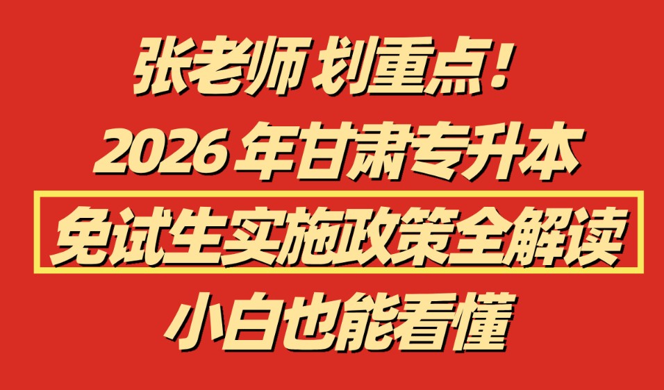 1月15号,甘肃省教育考试院正式发布了2026年专升本免试招生实施文件,张老师第一时间就给大家转载了,并且逐字逐句对比研读,现在就给咱们甘肃的免试生考生们把政策讲明白、讲透彻!