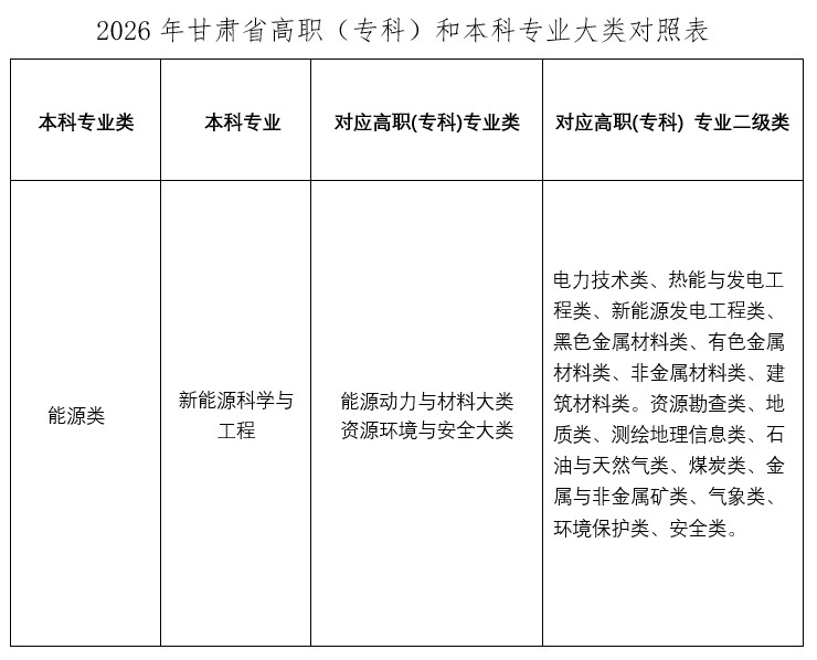 1.2026年甘肃省高职(专科)和本科专业大类对照表