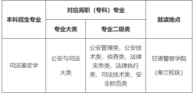 我校2026年高职(专科)升本科招生专业为司法鉴定学,具体招生计划以甘肃省教育厅下达及甘肃省教育考试院公布为准。
