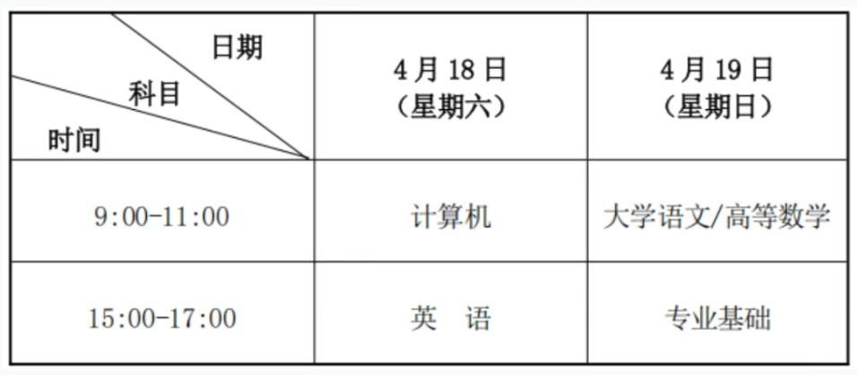 1.文化素质:主要测试考生基本公共知识。考试科目包括计算机、英语、大学语文或高等数学,共3门。