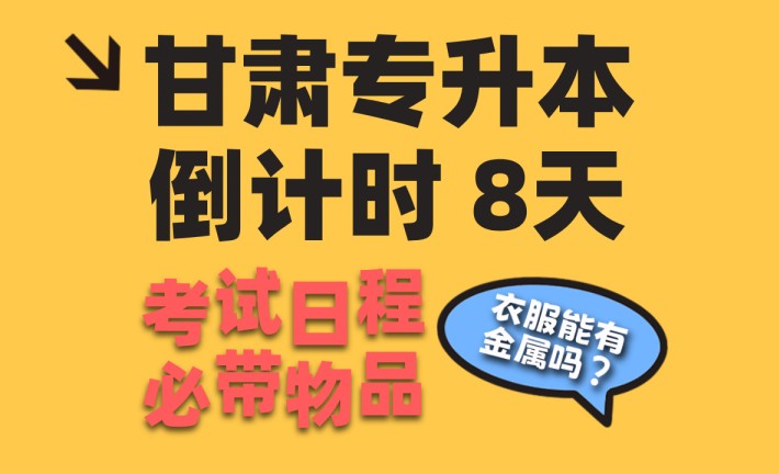 哈喽,各位小伙伴,今天是2026年4月9日,距离甘肃专升本考试还有8天,今天给大家分享讲一下:参加甘肃专升本考试的日程,还有你需要带什么,哪些不能带,衣服能带金属吗。